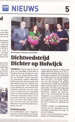 Het winnende gedicht Aan het ziekbed is opgenomen in de jubileumbundel '10x Dichter op Hofwijck' uitgegeven door het Huygensmuseum